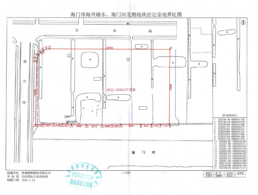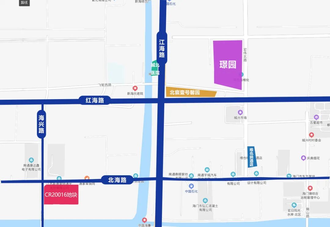 区位交通:地块北至北海西路、南至海门河、西至海兴路,紧邻在建的江海路快速通道,距海门汽车客运站仅1.8km,南北通畅,交通极为便捷;