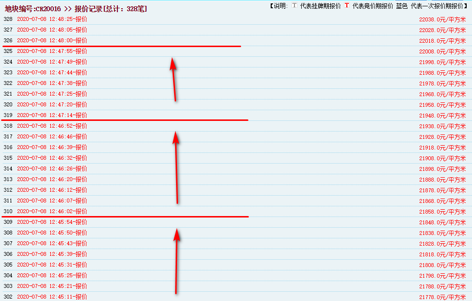 又过了半小时,竞争的火热程度依旧不减,单分钟内出价超10次已属正常。此时,溢价率已经达到了87.4%,楼面价12243元/㎡。