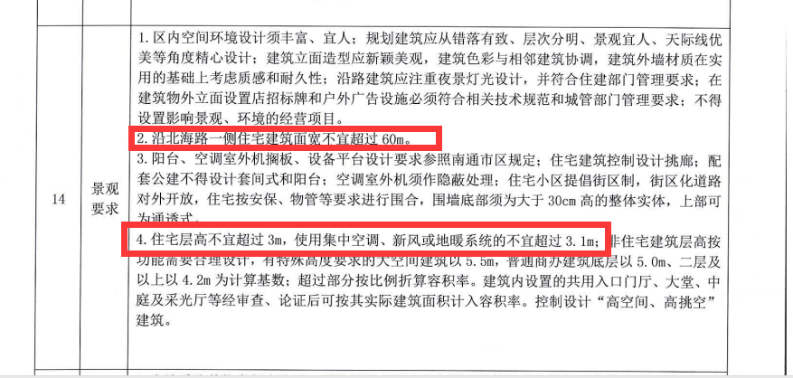 据出让公告显示,该地块规划住宅建筑高度须大于18米且不大于50米;沿北海路一侧住宅建筑面宽不宜超过60米,住宅层高不宜超过3米,使用空调、新风、地暖系统的不宜超过3.1米。