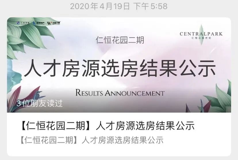 仁恒公园世纪二期取得预售许可证后,人才选房共有49组高层房源,2组洋房房源可供选择。从仁恒公布的选房结果来看,人才选房除了自行放弃,几乎达到100%的中签率!