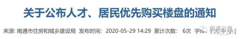 而就在今年4月30日,南通市出台本市居民在市区优先购买首套普通商品住房实施办法(试行),据市住建局相关负责人介绍,被认定为首次购房居民优先购买的楼盘,房地产开发企业在建筑面积144 平方米以下(含)房源中,采取公证摇号方式随机抽取不少于30%的房源,供首次购房居民优先购买;