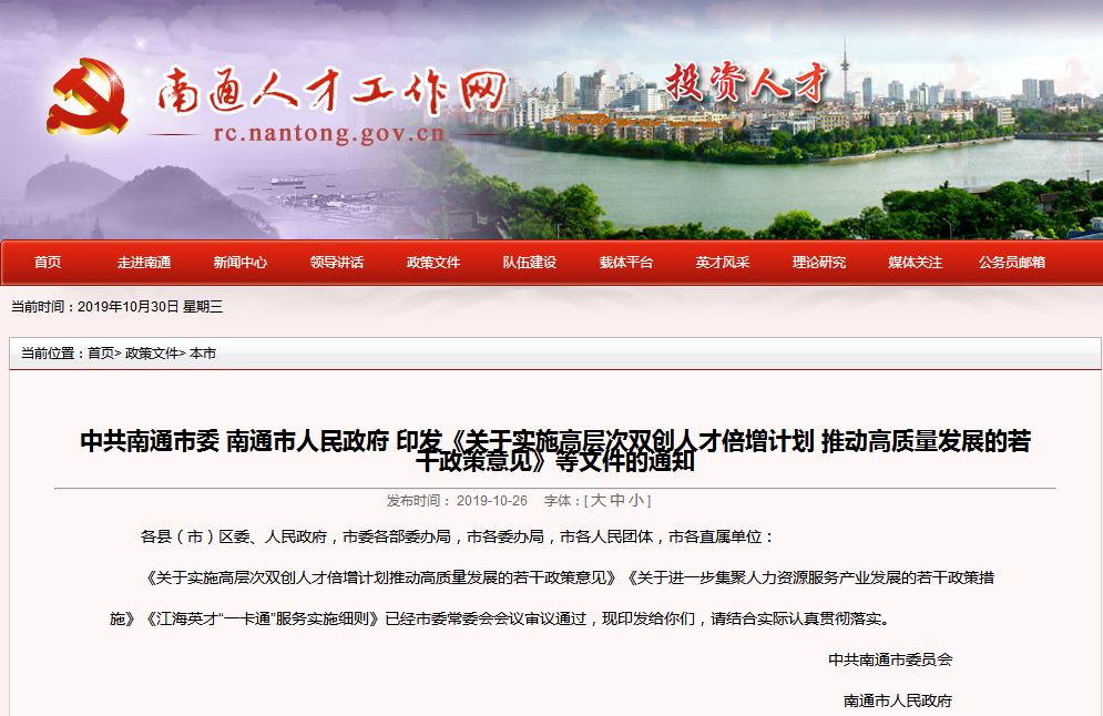 其实早在去年,南通就已经加入“抢人才”大战,先后出台了人才优先购房、放开落户条件、增加综合补贴等一系列政策和措施,吸引大量优秀人才来通创业就业!