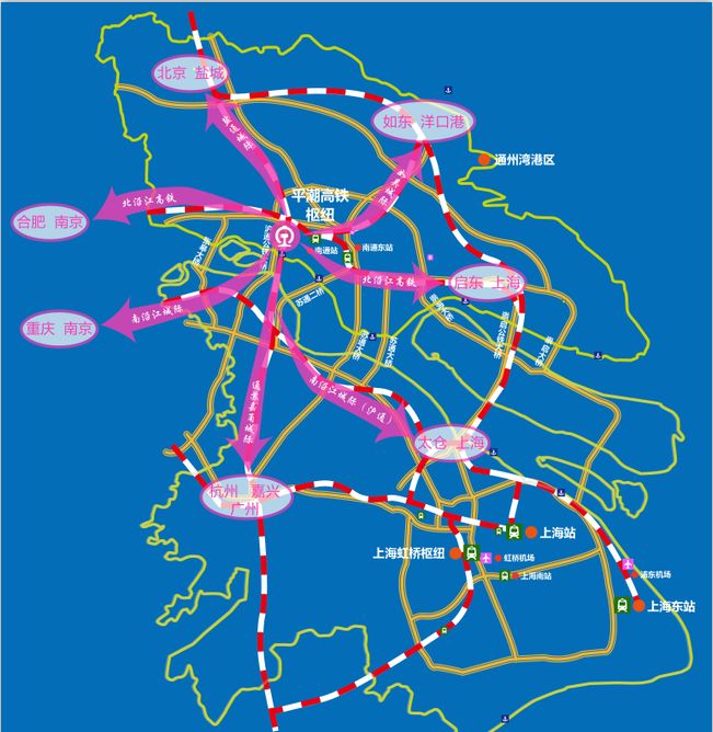 不久的将来,北沿江高铁、沪通铁路、通苏嘉和已通车的沪杭高铁,共同形成上海高铁外环,而南通西站是上海“高铁外环”的重要节点。南通西站定位为铁路网中心枢纽,2台8线规模,建成启用后预计旅客年发送量近期240万人,远期320万人。